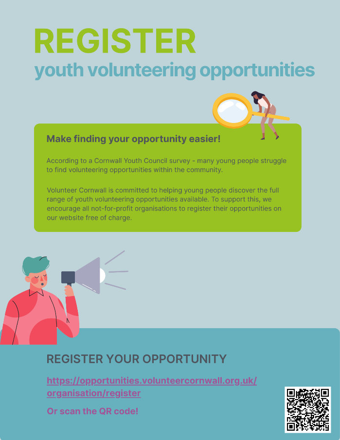 Register Here: https://opportunities.volunteercornwall.org.uk/organisation/register